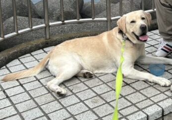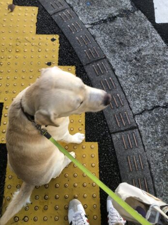 【写真】信号待ち中です。お座りするので汚れてしまうのは仕方ないですが・・・。