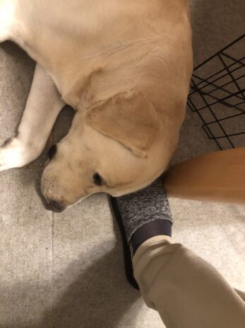 【写真】(昨夜)はしゃぎすぎて疲れた顔です。スリッパを枕にしています。