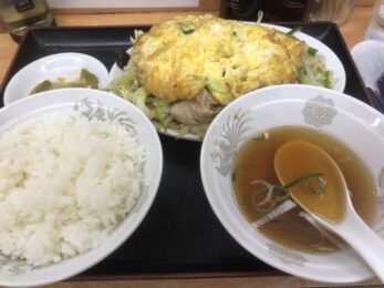 【写真】(昨夜ですが)龍門飯店の野菜玉子定食です。おかわりもしてお腹いっぱいです。