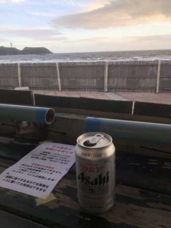 【写真】缶ビールと海風で冷えて途中トイレ行きたくなり間の悪い時間がありました・・・。