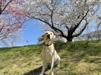 【4月】リードの色を見るとドックスクールで撮影してもらったものです。春よ早く来い!